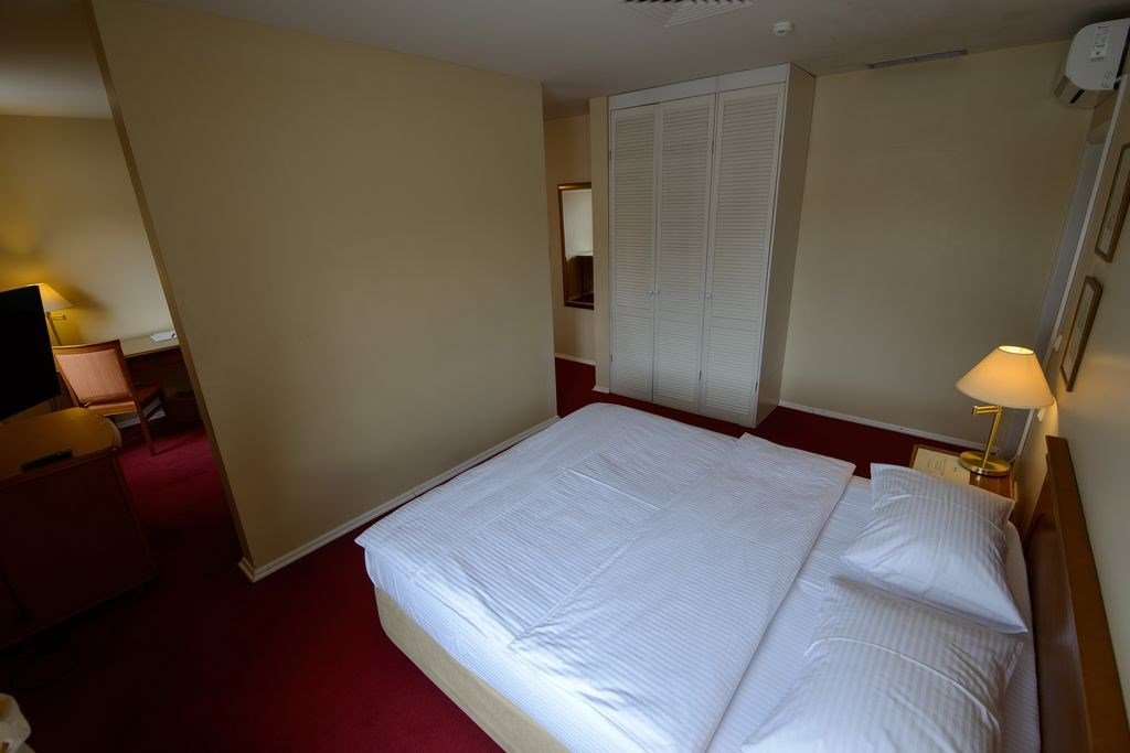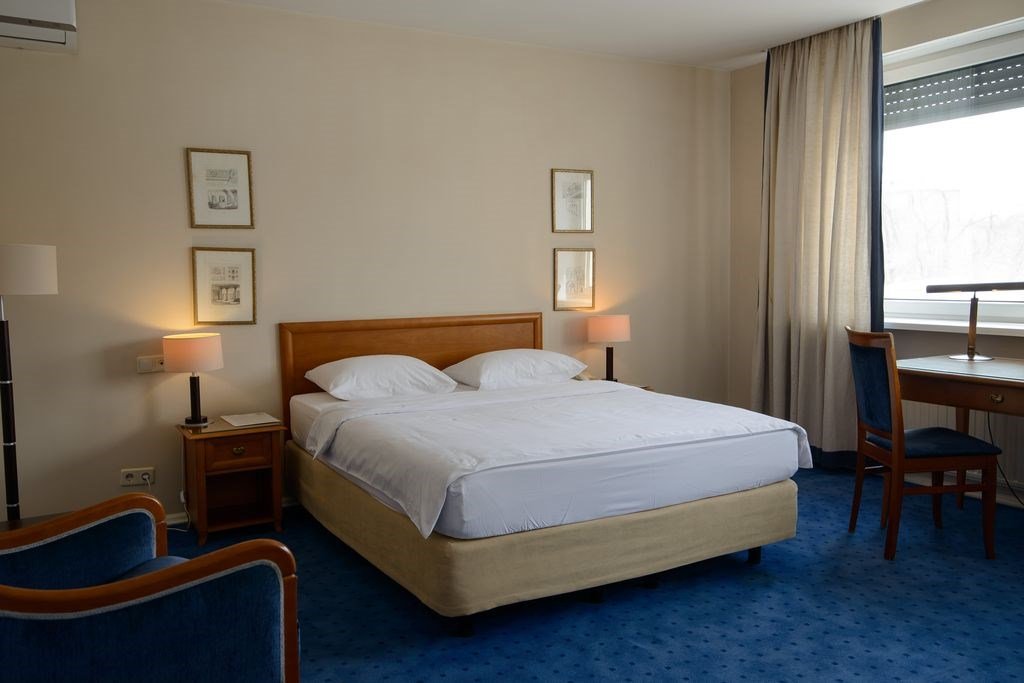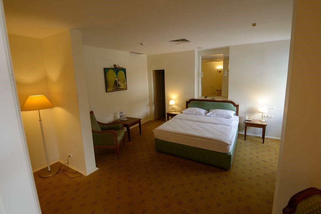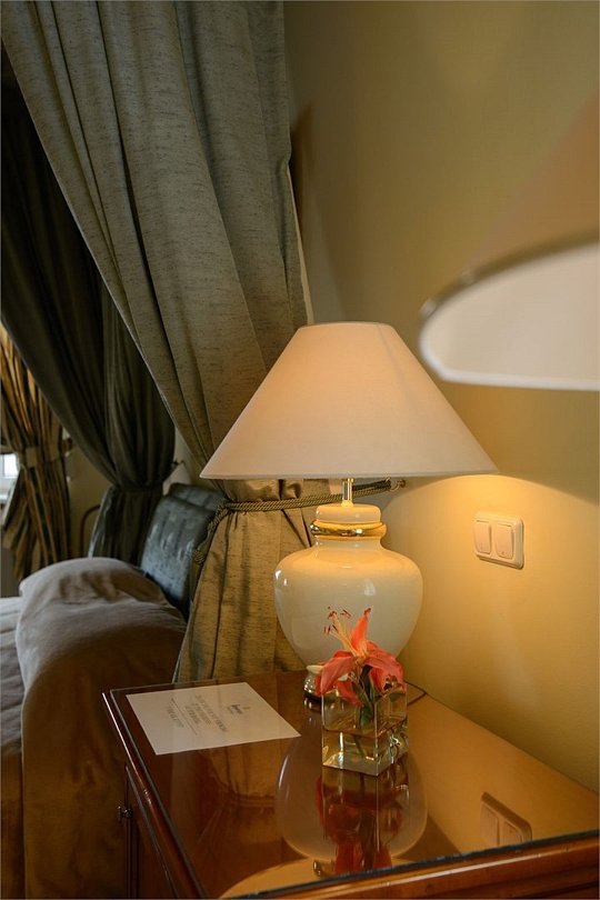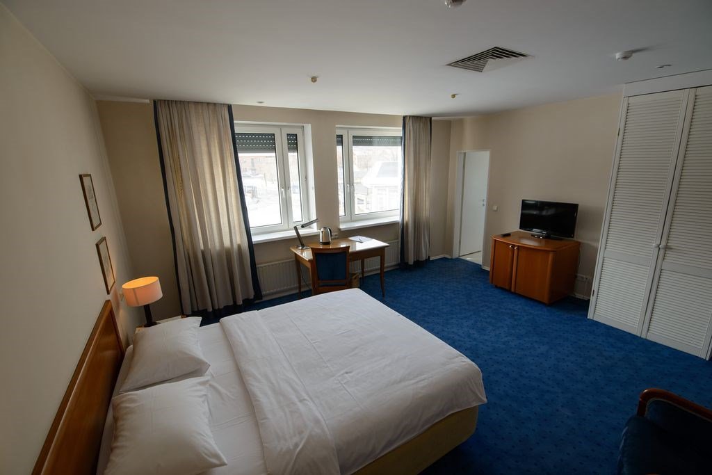 Все номера de Luxe оснащены дорогой итальянской мебелью, декорированы с использованием высококачественных тканей и отделочных материалов, украшены первоклассными картинами современных художников, оригинальными светильниками. В каждом номере "делюкс" имеется просторная двухспальняя кровать. Окна номеров выходят на северо - восток.Услуги и удобства