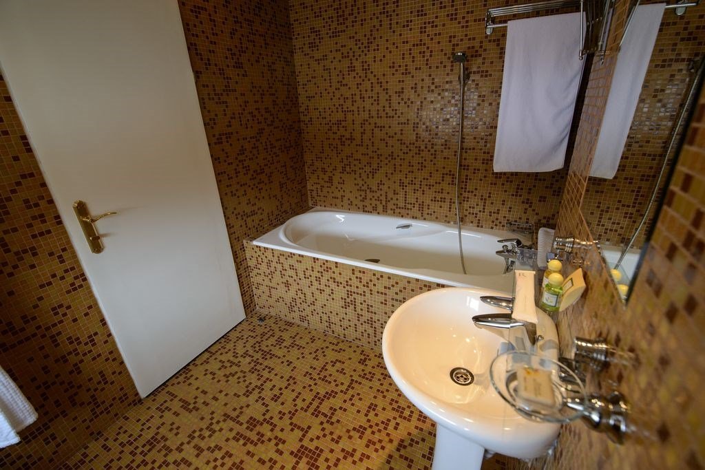 кабельное телевидение, Wi-Fi, телефон, кондиционер, фен, ванна, халаты, банные полотенца, тапочки, двуспальная кровать, письменный стол, сейф, вид на сад, вид во двор, туалетные средстваВ гостиничном номере