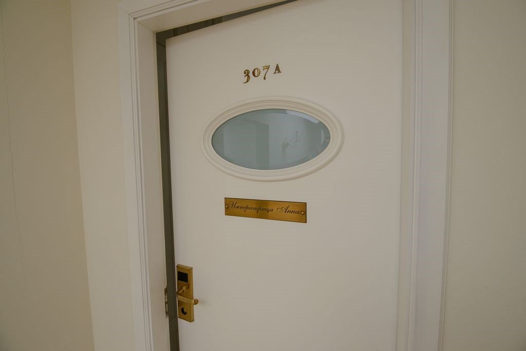 Площадь номера – 42 квадратных метра. Номер оборудован широкой кроватью королевского размера с балдахином и телевизором диагональю 72 сантиметра. Гости могут насладиться просмотром не только основных и местных каналов телевидения, но и спутниковым телевидением. Изысканность номеру придает настоящая итальянская и испанская мебель, французские бронзовые бра, итальянский мрамор в ванной комнате. Номера 307а и 307б могут сдаваться как один смежный номер класса «сюит» или как два номера класса «делюкс», так как оба номера отделены от холла дополнительно общей дверью.Услуги и удобства