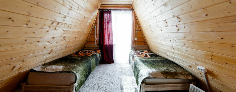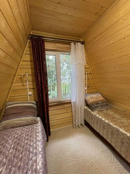 На втором этаже: 2 спальные комнаты (по 2 односпальные кровати), из 1 комнаты