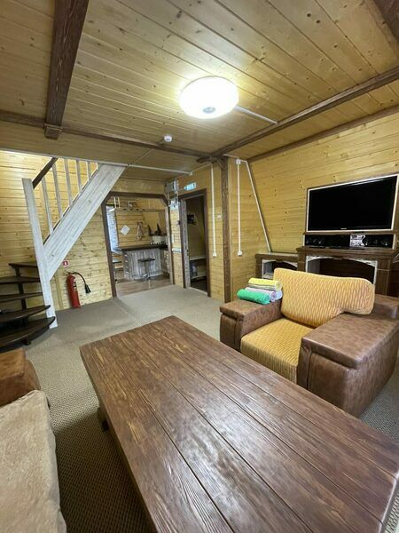 Оборудование: холодильник, электрический чайник, микроволновая печь, набор посуды, телевизор со спутниковым TV, профессиональная караоке система, обогреватели, вентиляторы, Wi-Fi. Дополнительно: беседка на 12 человек (со столом, стульями и мангалом), а так же баня с купелью.