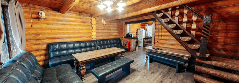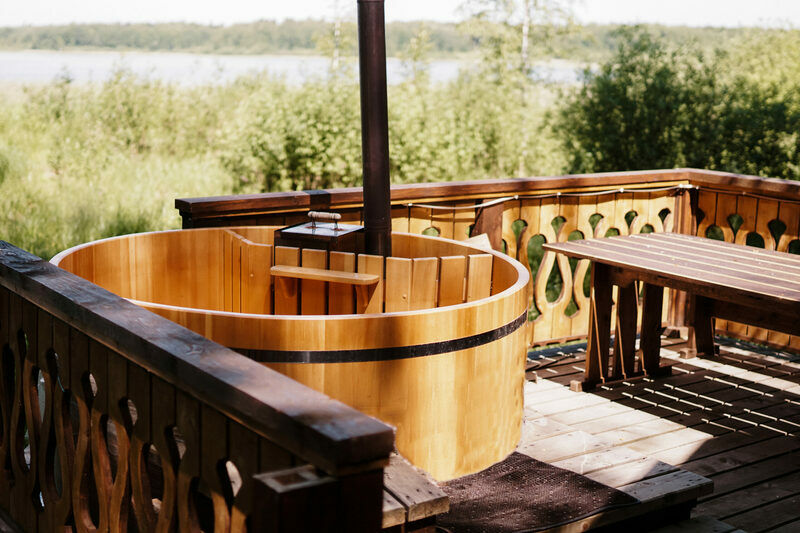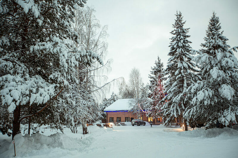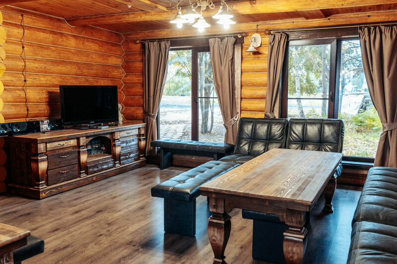 Домики расположены в лесу, на территории усадьбы можно проводить дружеские и семейные праздники для этого имеются уютные гостевые залы. Также можно посетить русскую баню и купель.
