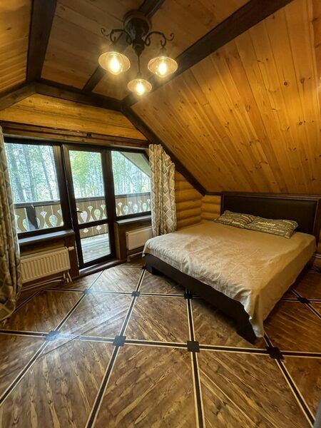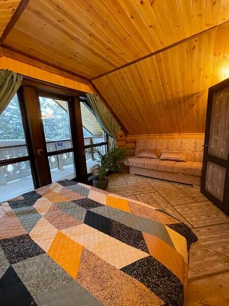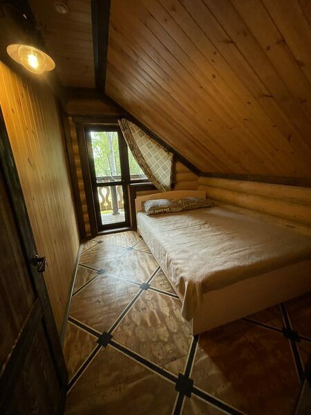 На втором этаже: спальная комната №1 (одна двуспальная кровать), спальная комната №2 (одна двуспальная кровать), спальная комната №3 (одна двуспальная кровать и раскладывающийся диван на 2-х человек). 2 балкона. Из всех комнат есть выход на балкон. Оборудование: холодильник, электрический чайник, микроволновая печь, набор посуды, телевизор со спутниковым TV, обогреватели, вентиляторы, Wi-Fi. Дополнительно: беседка на 12 человек (со столом, стульями и мангалом).