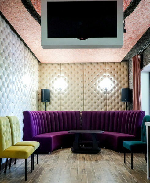 Собирайте друзей и коллег, выбирайте любимую композицию, берите в руки микрофон... и дайте свободу своему таланту. А поможет Вам в этом профессиональное караоке-оборудование с постоянно пополняемой базой композиций, сценическое освещение и мощные колонки. Можете не сдерживаться, зал полностью звукоизолирован.