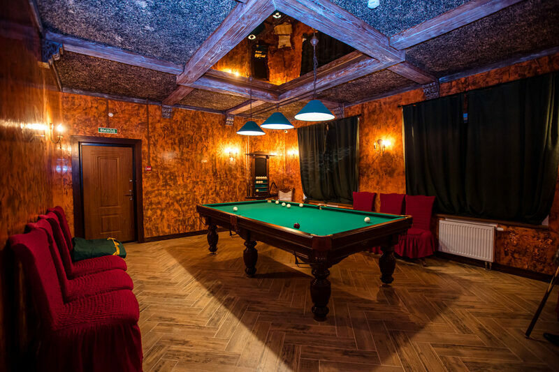 Также имеется развлекательный комплекс с возможностью аренды банкетного зала. Вместимость зала 50 человек, проектор, светомузыка, музыкальная аппаратура. Есть бильярд, караоке, каминный зал и многое другое.