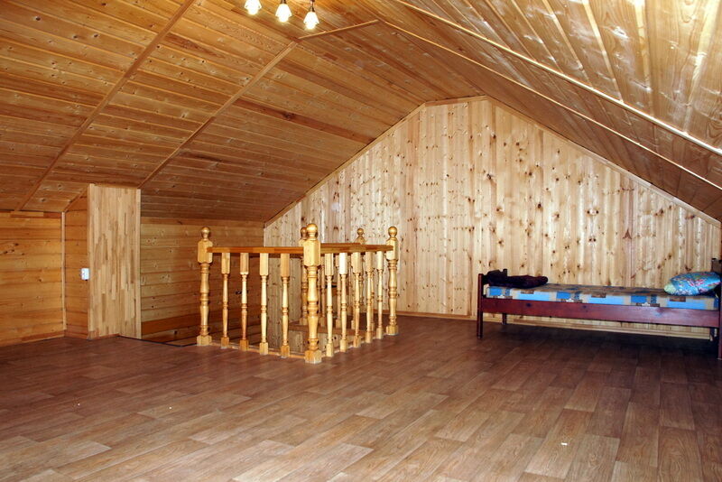 К услугам отдыхающих просторная русская баня на дровах, рассчитанная на большую компанию.