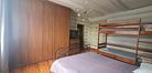 В доме комната с двухэтажной кроватью и большой двуспальной кроватью, в комнате большой шкаф-купе для одежды, комод и телевизор.