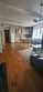 Гостиная-кухня-холл с мягкой мебелью, большим столом и стульями, и ТВ. Шкаф для книг и прочего.
