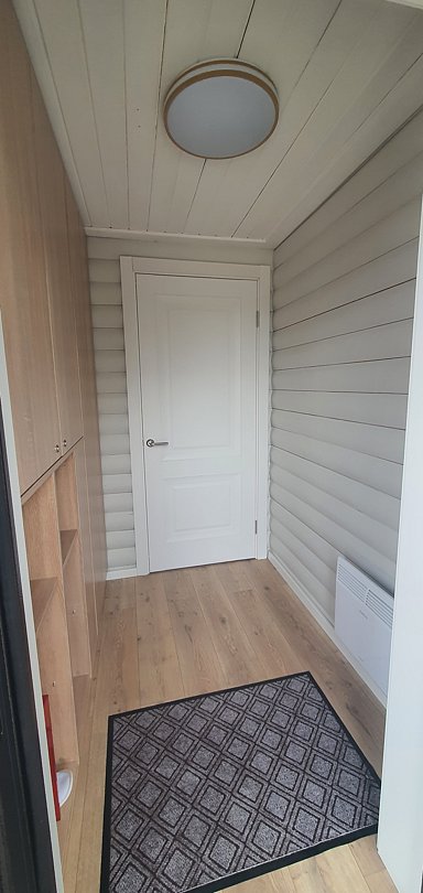 При входе теплая батарея (обувь зимой будет в тепле), шкафы для одежды. 2 шкафчика на замочке.
