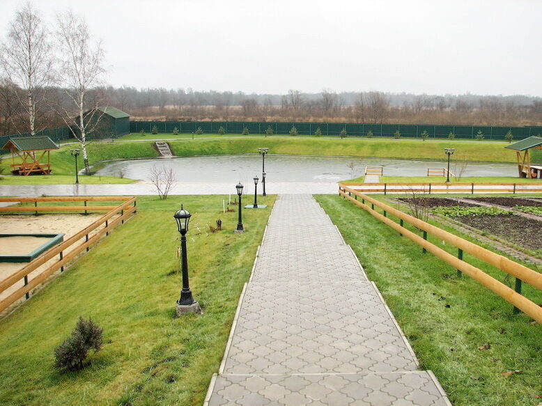 На территории находится зарыбленный пруд для рыбалки.