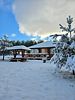 Дом оснащён просторной гостиной, полностью оборудованной кухней и отдельной ванной комнатой. Из окон открывается живописный вид на озеро. Возле домика расположена беседка и мангальная зона.