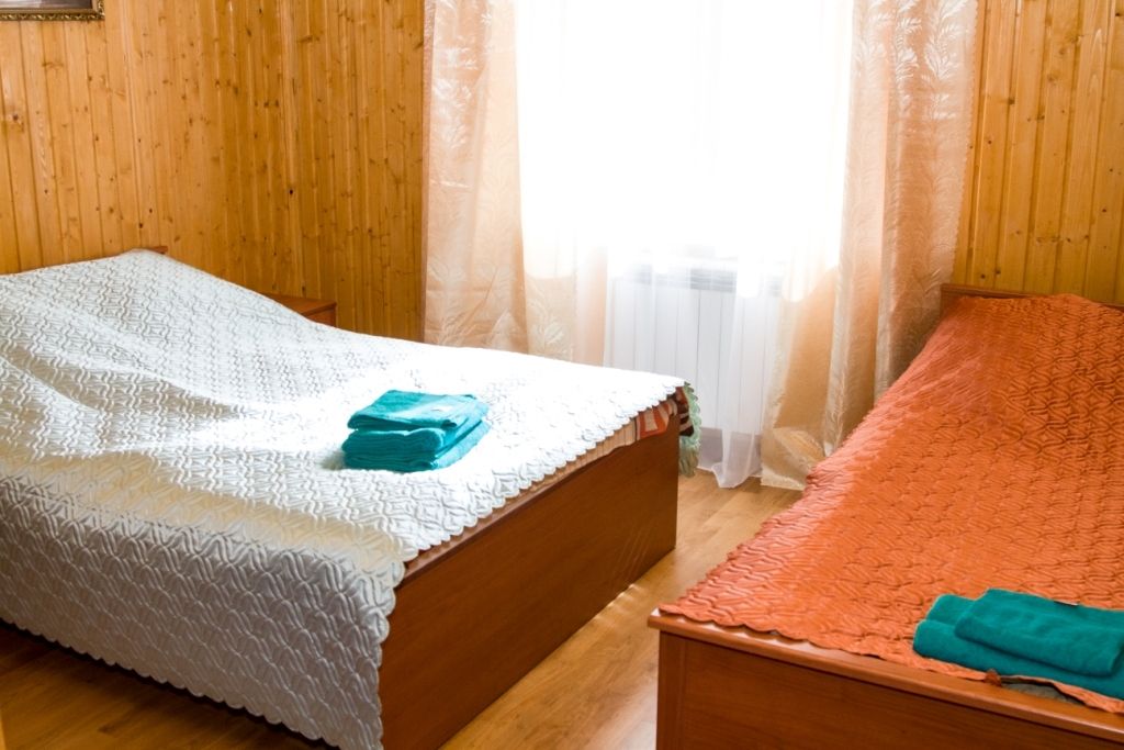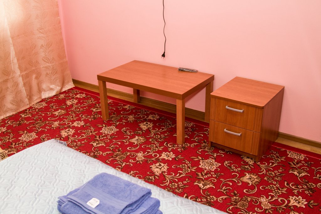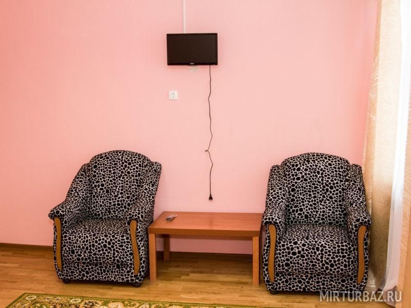 В номере: двухспальная + односпальная кровати, душ или душевая кабинка, горячая, холодная вода, сан.узел, в некоторых номерах балкон. Телевизор, шкаф, тумба прикроватная, журнальный столик.