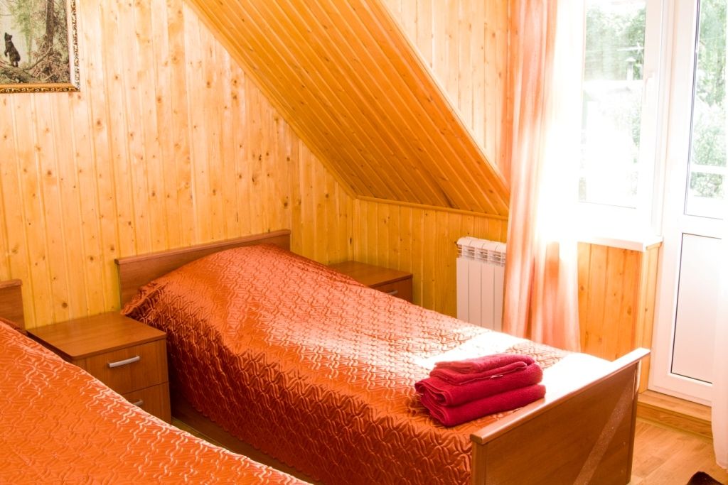 В номере: односпальная + двухспальная кровати, душ или душевая кабинка, горячая, холодная вода, сан.узел. Телевизор, шкаф, тумба прикроватная, журнальный столик. В 4 из 5 номеров балкон.