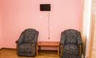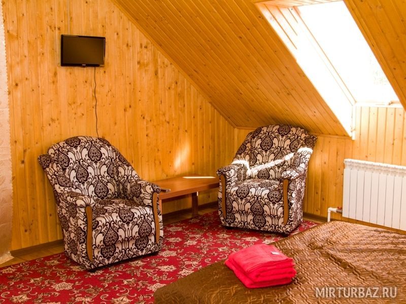 В номере: двухспальная кровать, душевая кабинка, горячая, холодная вода, сан.узел. Телевизор, шкаф, тумба прикроватная, журнальный столик, диван, 2 кресла.