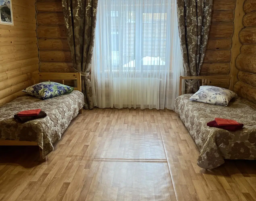 Комнаты выполнены из дерева. Домашняя обстановка царит во всех помещениях гостиницы. Предоставляются номера двух и трехместные с раскладными диванами.