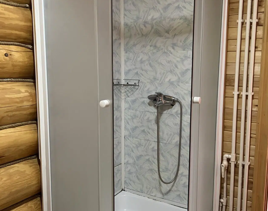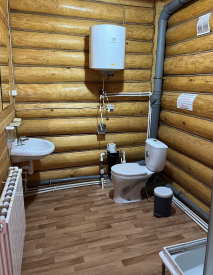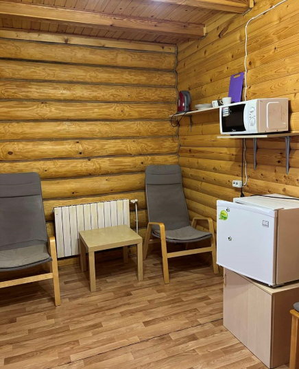Двухместный номер с двумя полутороспальными кроватями, собственным санузлом, телевизором, чайником, набором посуды. Холодильник и микроволновая печь в холле на 4 номера.