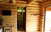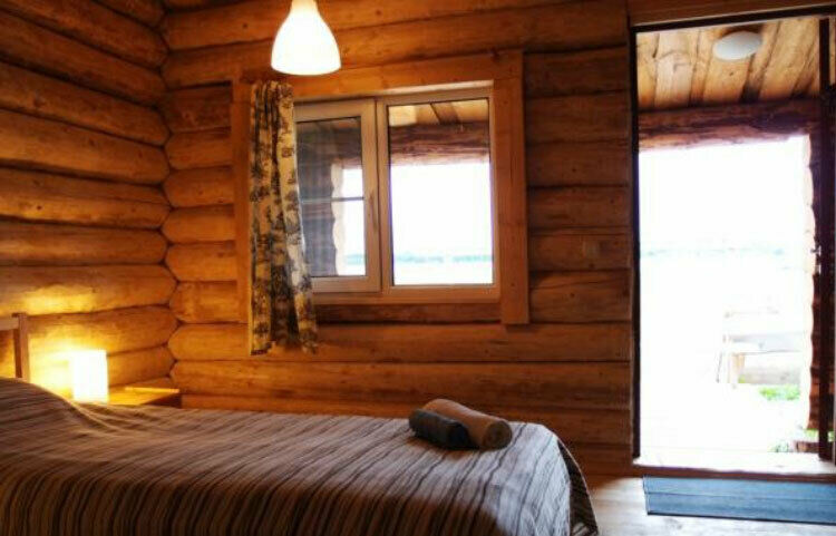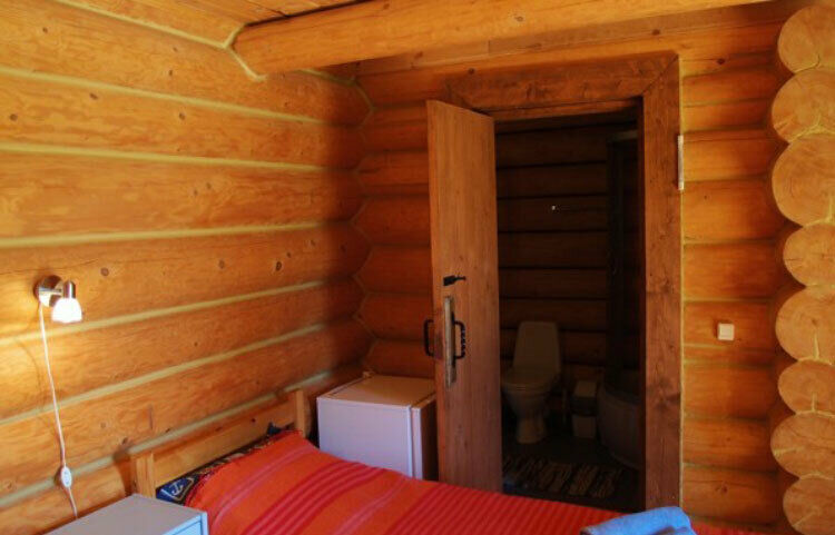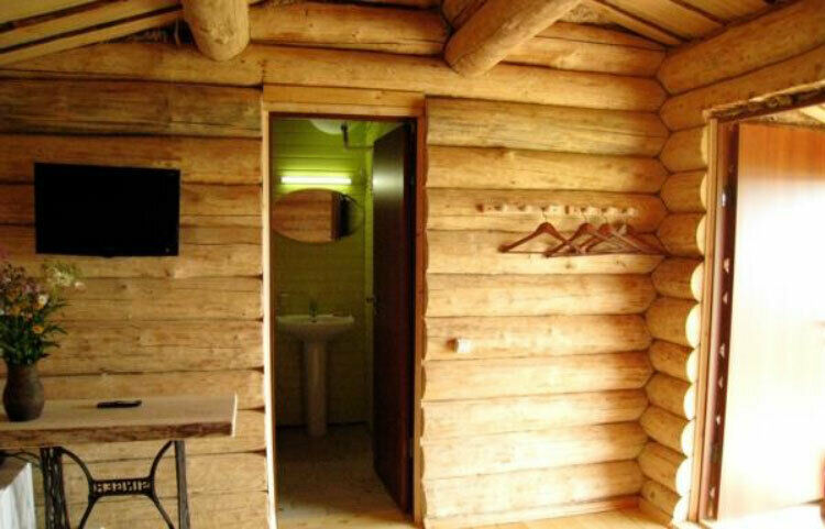 Номера в домиках просторные. Стены из хвойных бревен проконопачены мхом. Кровля утеплена и покрыта метало черепицей. Большие крыльца с широкими ступенями ведут на открытые террасы. Номера оборудованы всей необходимой мебелью. Спальные места — односпальные сосновые кровати.
