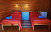 Номер оборудован всей необходимой мебелью. Спальные места — односпальные сосновые кровати.
