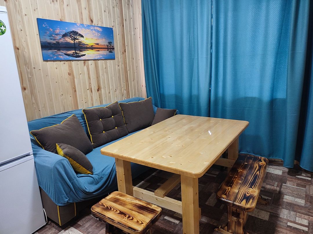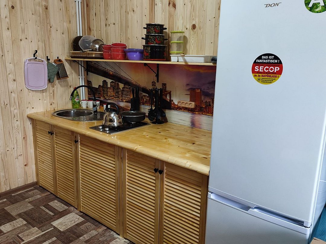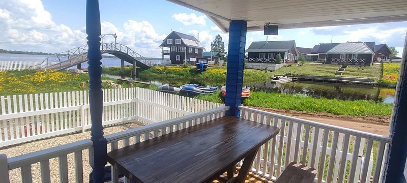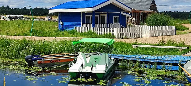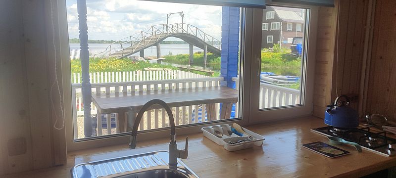 ДостоинстваОтдыхали с 25 по 29 августа 2024. У нас был трехместный ( +2 доп. места) новый домик красивого синего цвета! В доме было уютно и комфортно, главное, чисто, и все необходимое: телевизор, большой холодильник, микроволновка, раковина, 2-х комфорочная плита, посуда и приборы, кастрюли 3-х размеров, сковорода , много мисок и салатников, терка, дуршлаг, в общем, всё, что может пригодиться! В туалетной комнате душ, мойдодыр, унитаз, жидкое мыло, туалетная бумага, розетка. Горячая вода была всегда! В кухне стоит большой удобный диван, в спальне-две кровати ( 140 и 90 см), стол и крючок с вешалками. Рядом с домом пляж с белоснежным песком, баня, прокат лодок, сапов. Мы брали лодку с мотором, рыбы обловились!!!! База находится в деревне Могилево, можно прогуляться , круго деревенские дома. Магазина нет, но почти каждый день приезжала автолавка со всеми необходимыми продуктами. Отдельное спасибо хозяину Артему! Трудяжка, целыми днями что-то делал с помощниками на стройке кафе и коптильни для рыбы! На все просьбы сразу отзывался, очень доброжелательный человек! Отдых удался, рыбы наловили, кругом красота, заросли кувшинок, тишина и покой!!! Обязательно вернемся!!! Кстати, про дорогу. Нас навигатор из Москвы повел через Вышний Волочек, т.е. против часовой стрелке. Положили новый асфальт, только последние км 10-15 был грейдер, главное, не разгоняться!