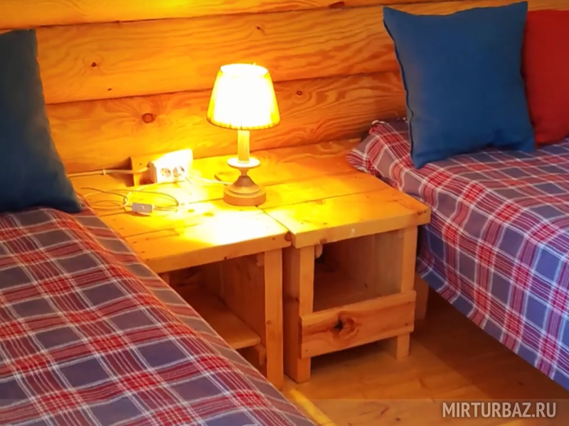 - В задней части дома выходят окнами на лес оборудованы двумя раздельными кроватями и кушеткой.