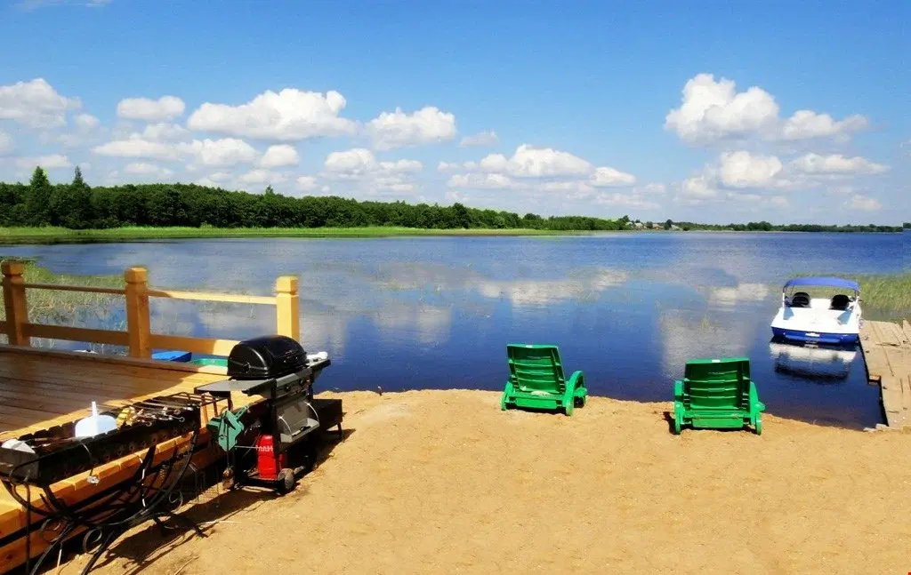 Помимо рыбалки в озере так же можно искупаться. К Вашим услугам чистый песчаный пляж в шаговой доступности от домика.
