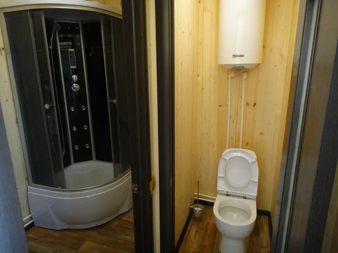Санузел в доме раздельный. Установлена душевая кабина. В водопровод подается ключевая вода.