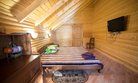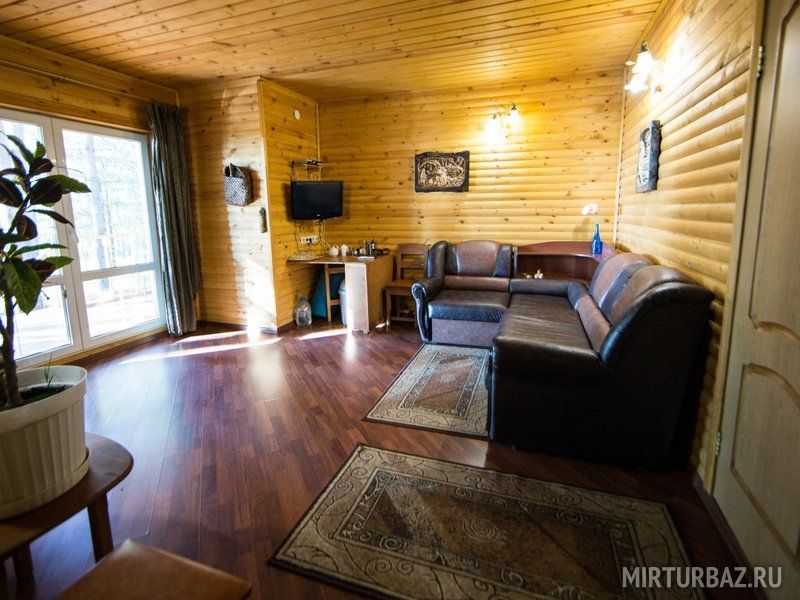 Есть русская банька, расположенная на берегу озера. Она окружена красивым сосновым бором. Обустроена парилкой с мокрым паром, каменкой на жадеитовых камнях. В душевой комнате представлено обливное устройство, работает душ. Есть и комната для отдыха, где отлично можно расположиться на кожаном диване с кружкой чая.