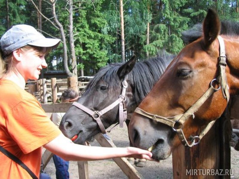 Рядом с базой большая конная база, где вы с ребенком сможете обучиться верховой езде.