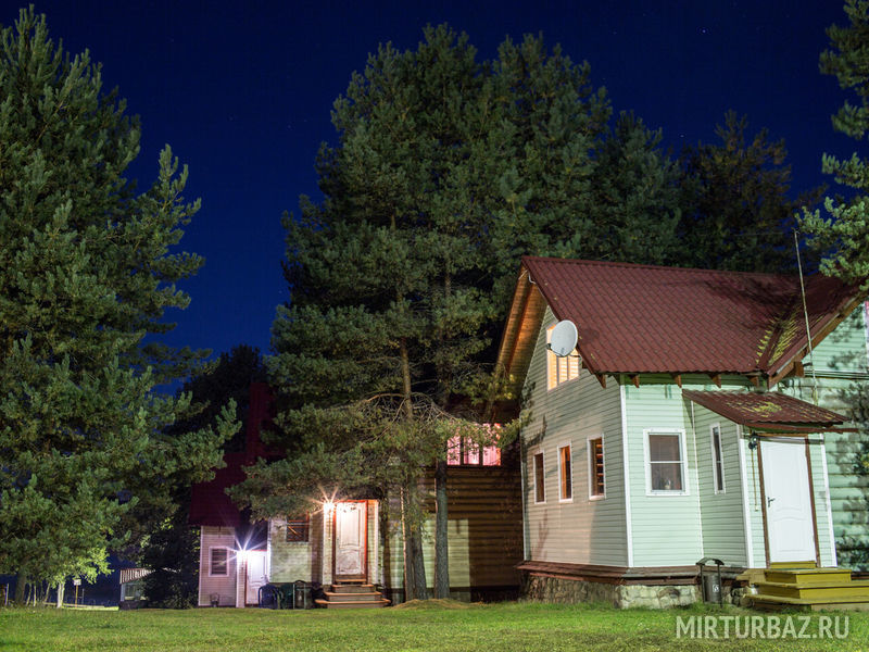 Большой коттедж на 6 семей расположен в красивом сосновом бору 1,5 га прямо на берегу озера Серменок, до озера Селигер 80 метров. На первом этаже коттеджа большой каминный зал-столовая, бар, банкетный зал, комната отдыха с настольными играми, DVD, спутниковое телевидение, караоке. Коттедж обслуживают свой повар, администратор, горничные. В коттедже 4 двухкомнатных, трехместных и 2 однокомнатных двухместных номера.
