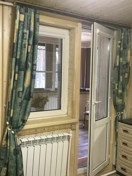 На первом этаже, закрытая застекленная веранда с видом на окрестную территорию и санузел.