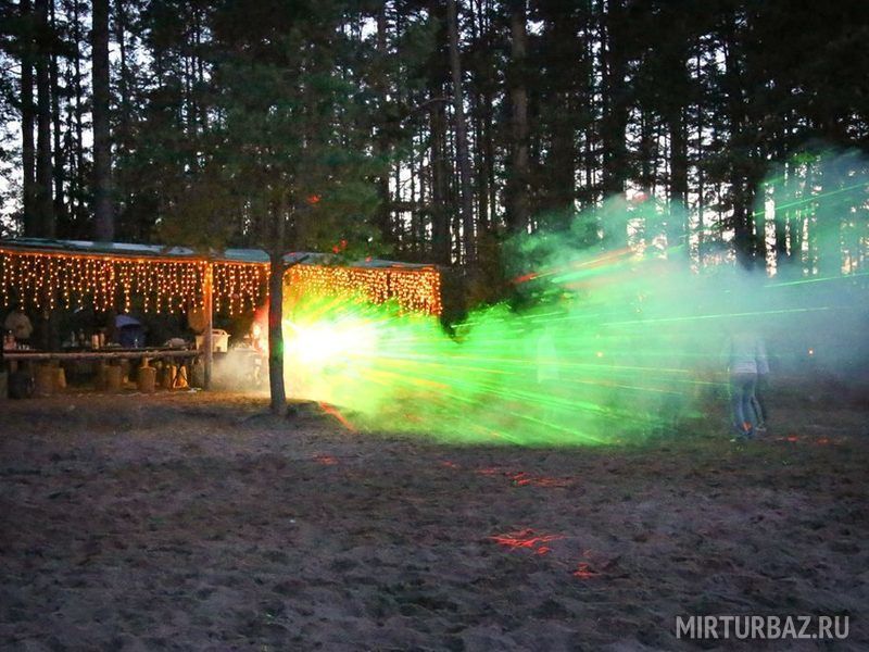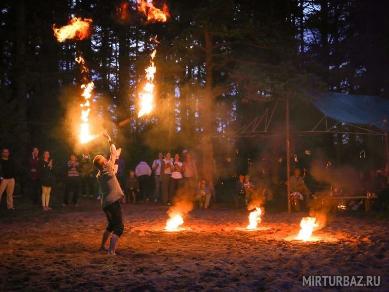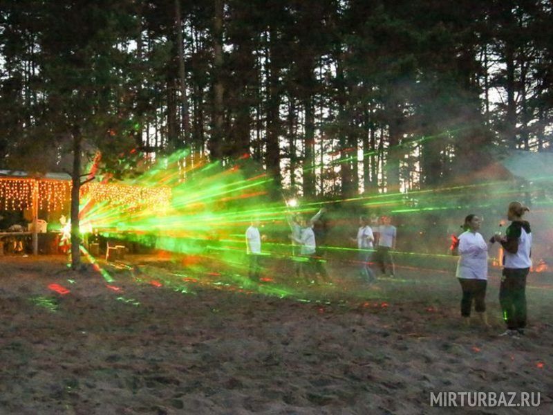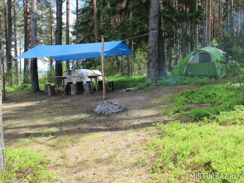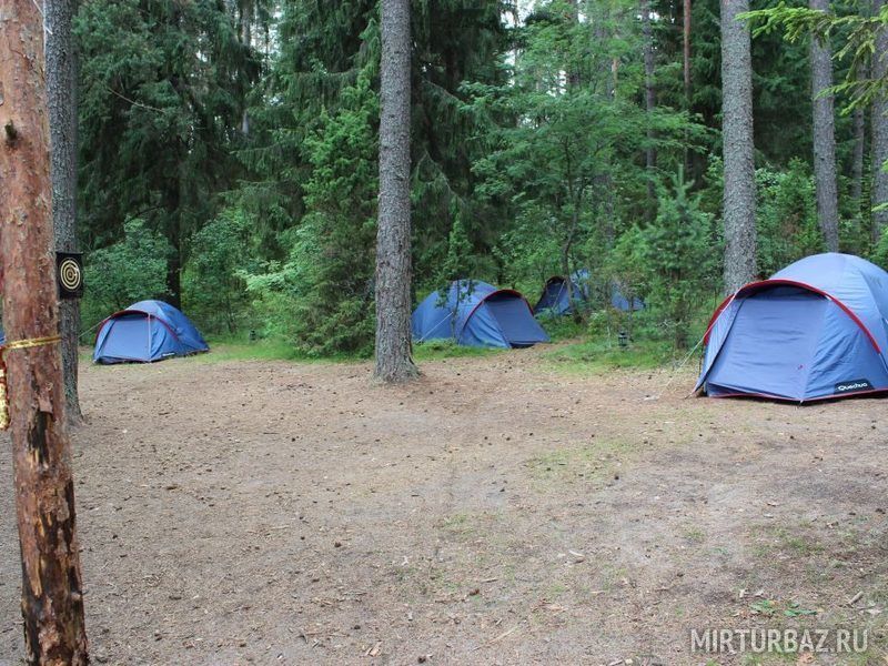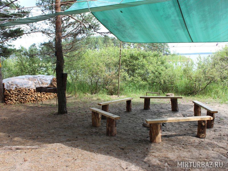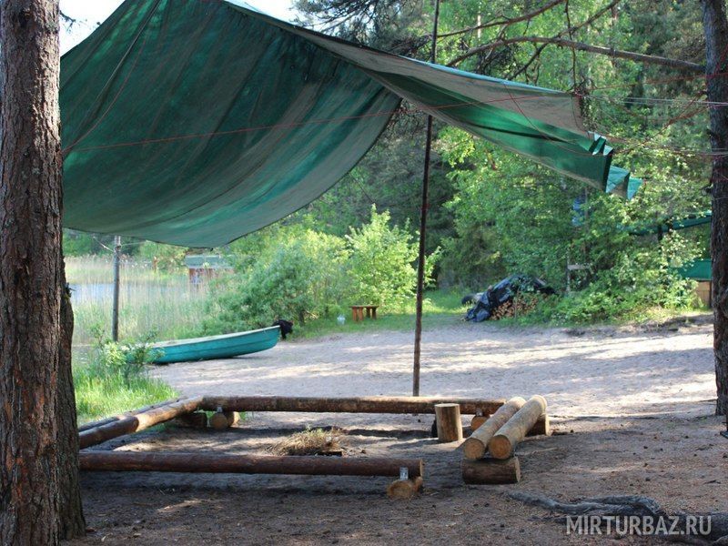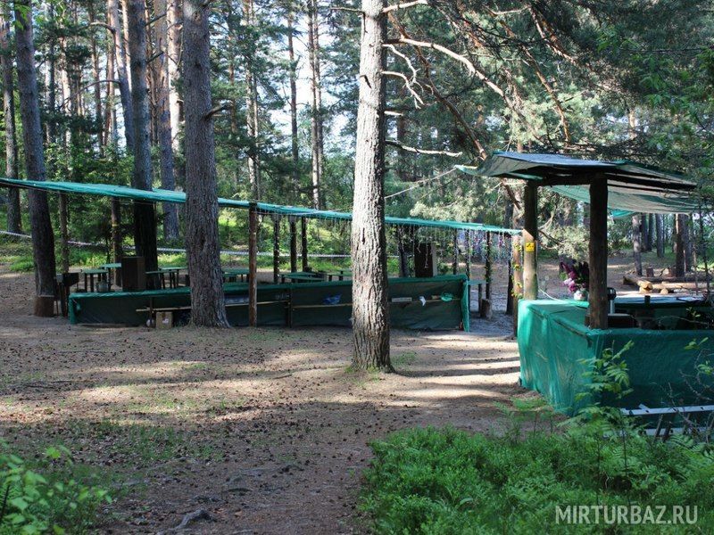 Комфортный лагерь с палатками обустроен прямо на берегу речки, а вокруг этой территории произрастает живописный сосновый лес.