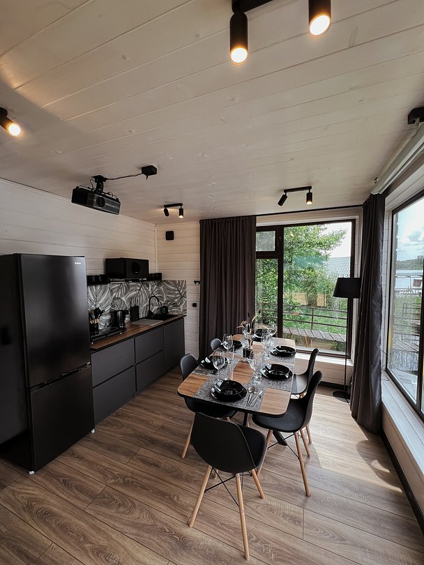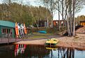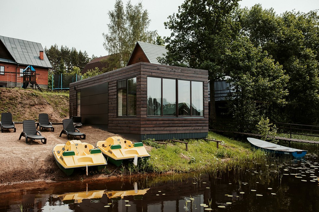 Есть собственный песчаный пляж, русская баня, мини-гольф, теннисный стол, детский батут, понтон для рыбалки, а также прокат лодок, велосипедов, сап-бордов, катамаранов, сигевеев и многое другое.