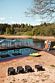 Из Питера через г. Демянск, в сторону д. Свапуще, далее около 20 км до поворота на д. Гуща. В деревне первый перекресток направо вдоль зеленого забора, далее через небольшой лес доезжаете до знака «Паркинг».