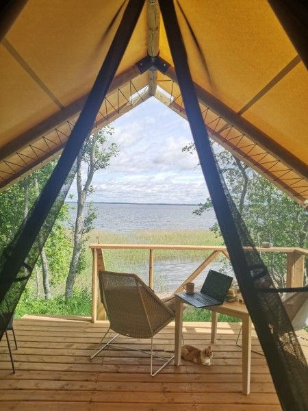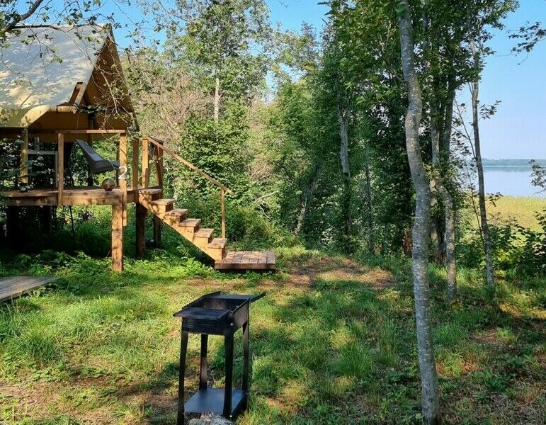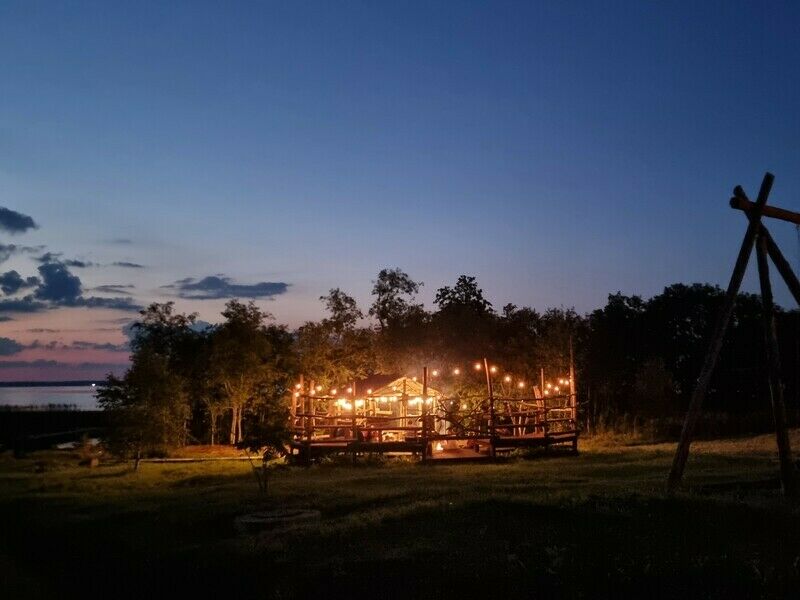 Комплекс занимает большую территорию, которая включает в себя часть береговой линии озера. Для размещения гостям предлагаются двухэтажные коттеджи-срубы и двухместные эко-глэмпинги. На базе отдыха для гостей работает баня, желающие могут взять в аренду лодки или каяки, чтобы отправиться на прогулку по озеру, также доступен прокат велосипедов.
