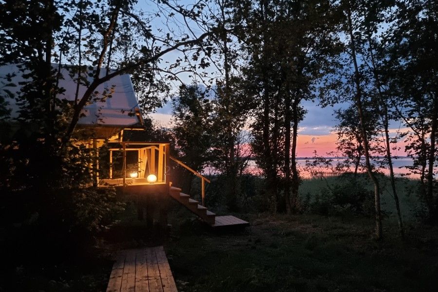 Летний Дом на самом берегу озера для проживания 3 - 4 человек. Полное единение с природой. Комфортабельный С/У рядом с домом, душ с теплой водой.