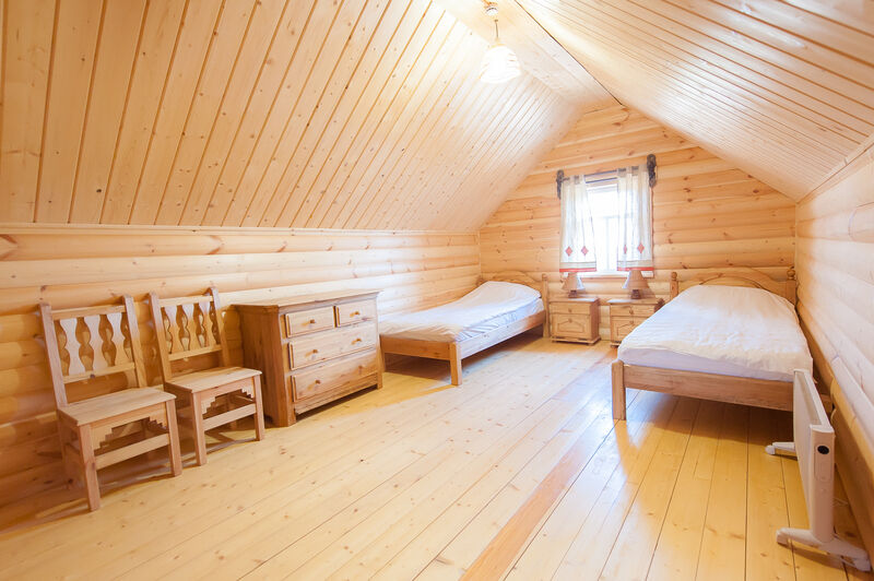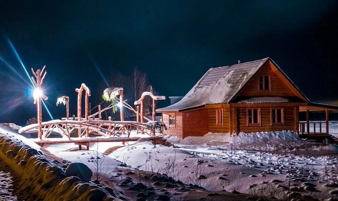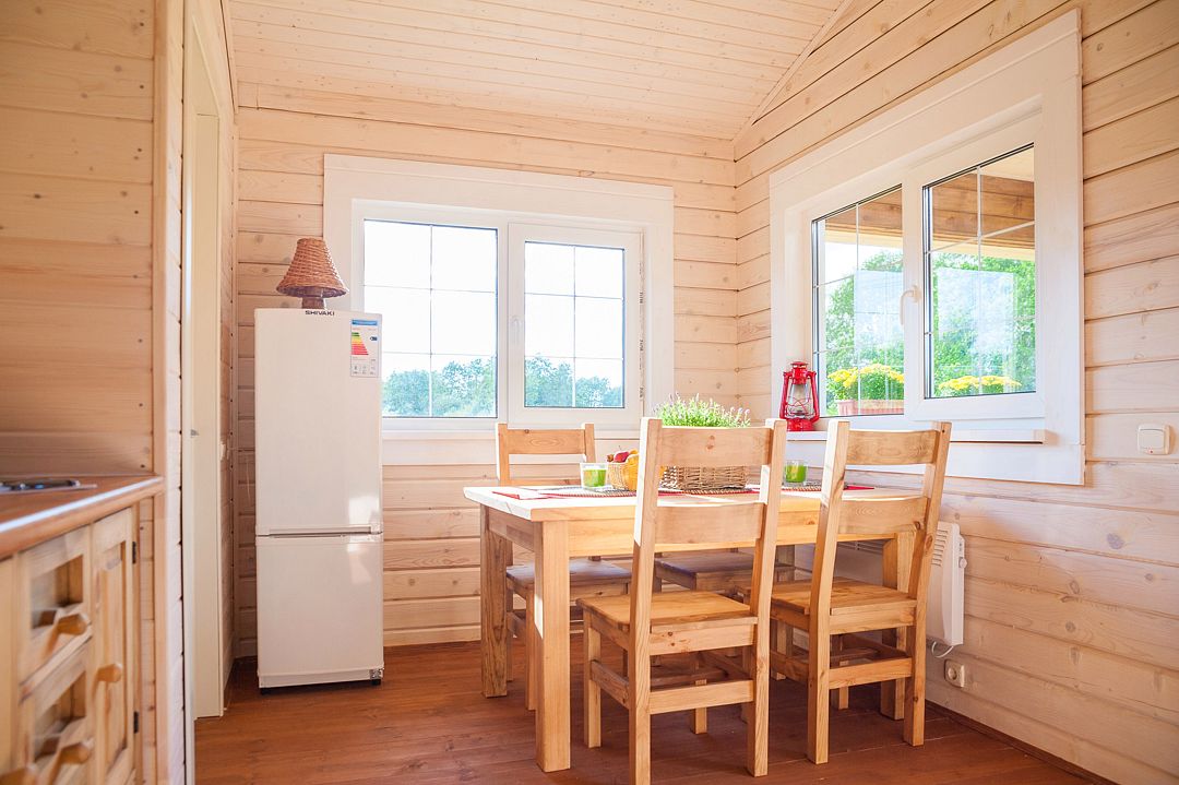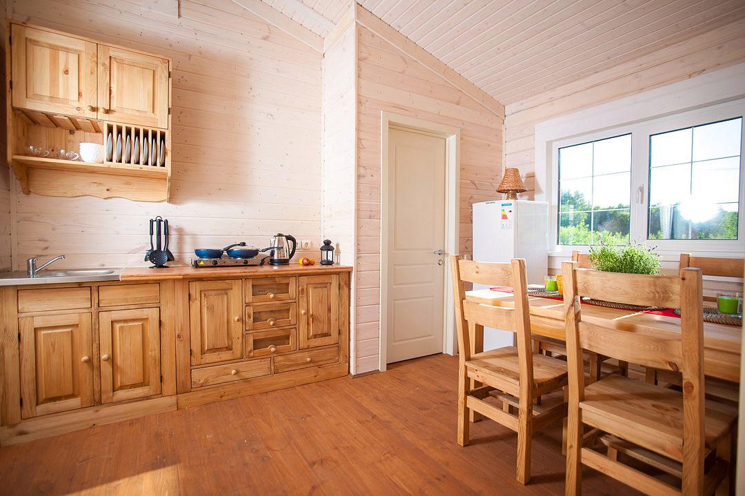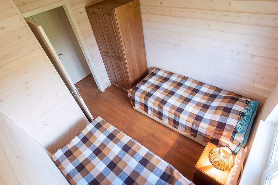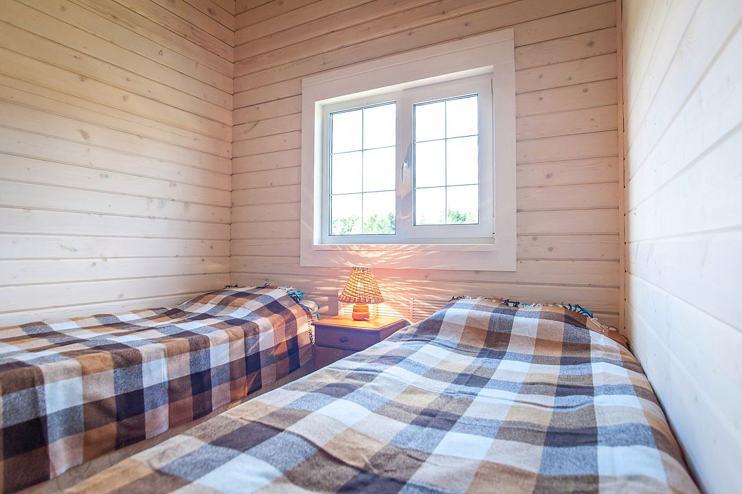 Помещения оборудованы собственной кухней и позволяют отдыхать на берегах озера Сиг с полным комфортом. Каждый дом оборудован всем необходимым для комфортного отдыха. Второй этаж дома – спальня на четыре кровати, на первом расположена гостиная с полноценным спальным местом на настоящей русской печи.