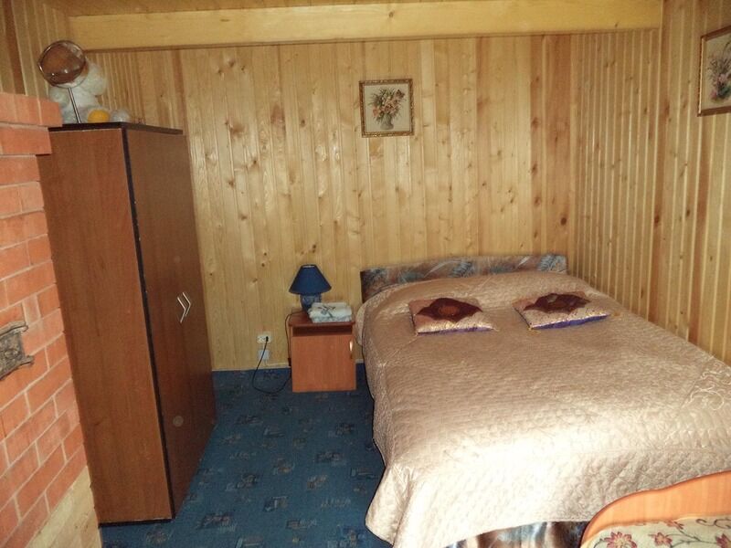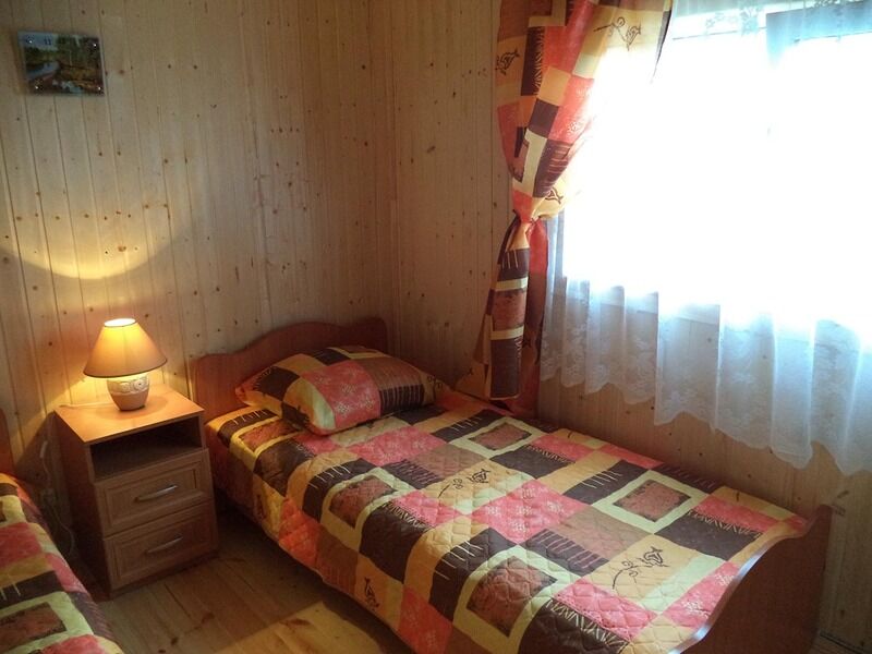 Второй этаж – шесть спален, санузел с душевой кабиной. В двух спальнях – двуспальные кровати, 2 тумбочки, шкаф; в остальных четырёх – по две односпальные кровати и 2 тумбочки. Есть возможность дополнительных мест.