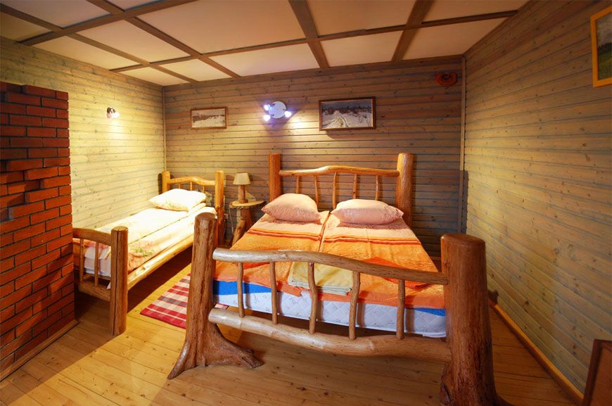 Две двуспальные кровати, две двухъярусные кроватиВ доме