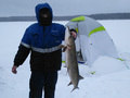 Читать полностьюНа Селигере ловят налима зимой на поставушки. Кусок резинового шланга с намотанной на него капроновой ниткой от 5 до 10 м, на конце груз (оливка), карабин и сменный поводок с крючком или двойником. Налим глубоко заглатывает наживку, проще поставить новый поводок, чем пытаться на морозе вытащить из налима старый. Поставушка опускается под лёд, для проверки рядом делают новую лунку, подцепляют проволочным крючком поставушку и смотрят размотана нитка или нет? Насадка: ерш, плотва(хуже), крупный выползок. Ставят поставушки по краю столов(отмель) глубина от 3 до 6 метров. Обычно попадаются налимы весом до 2,5 кг. Также ловиться на отмелях на крупные мормышки с подсадкой нарезки рыбы или червя.