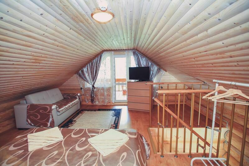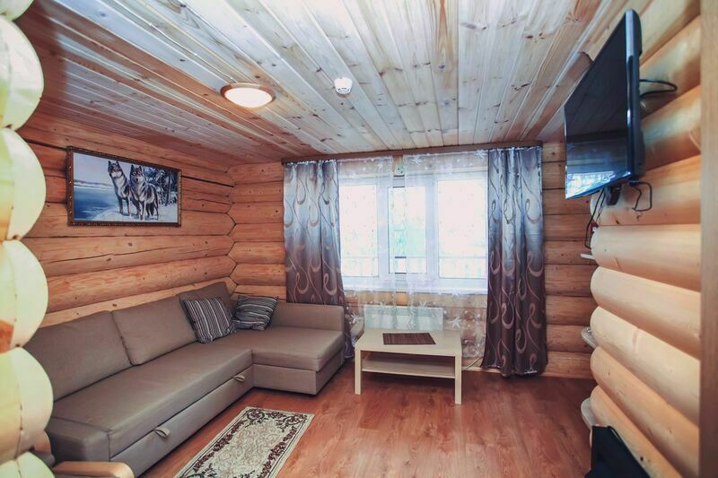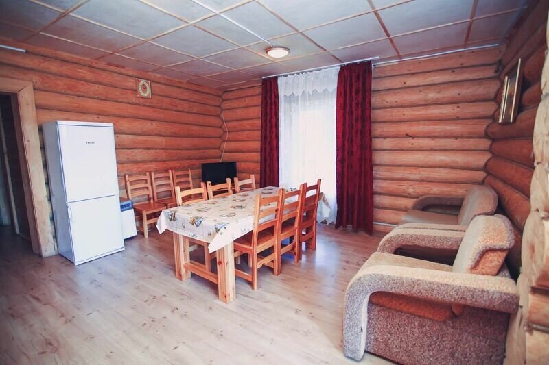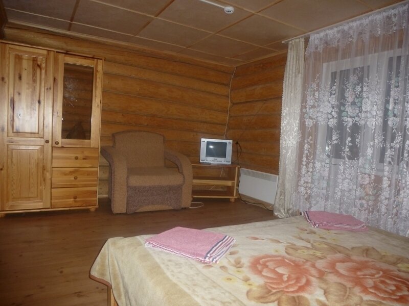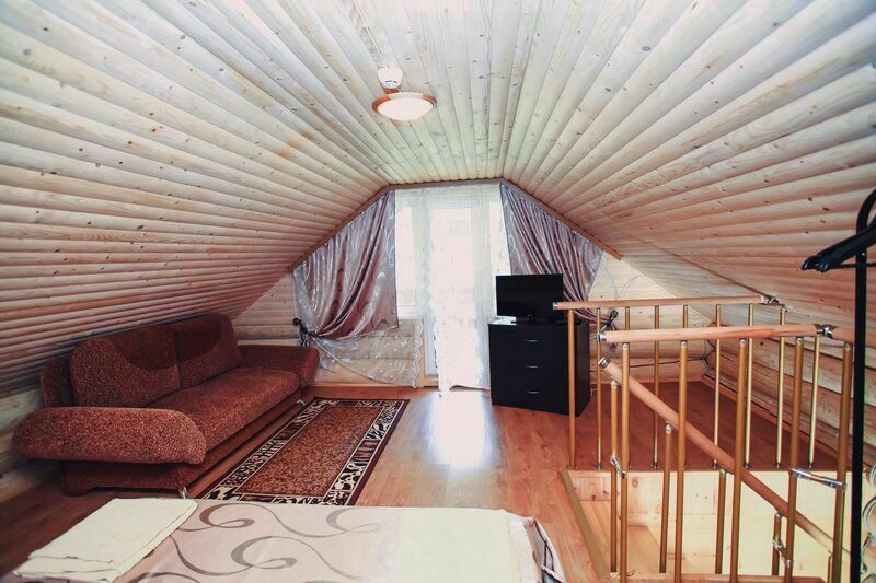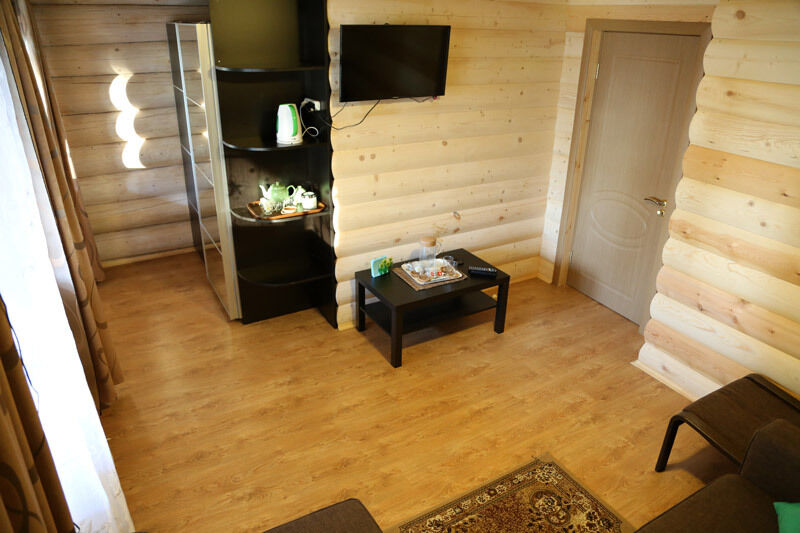 - уютная комната отдыха на первом этаже с мягкой мебелью, телевизором с антенной триколор, журнальным столиком и шкафом-купе. Также в этой комнате гости найдут небольшой холодильник для прохладительных напитков, чайник и чайные принадлежности, бокалы и другие необходимые мелочи;