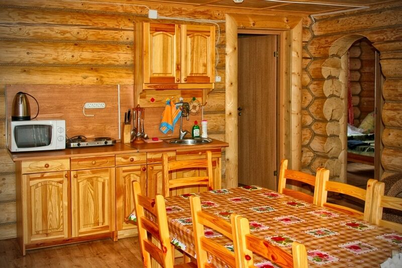 - Кухня: мойка, холодильник, микроволновая печь, электрическая плита, электрочайник с чайными принадлежностями, вся необходимая посуда и бытовая химия