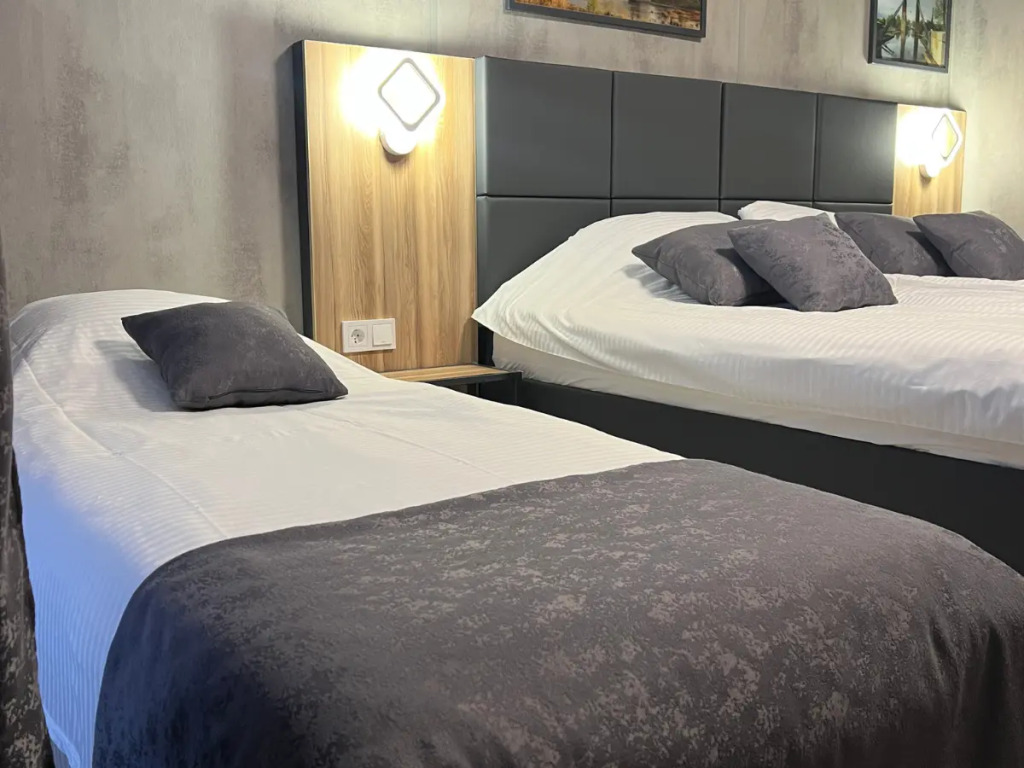 Размещение в номерах рассчитано до 2-х человек, при необходимости возможно дополнительное место для ребёнка до 12 лет за дополнительную плату. В каждом номере: двуспальная кровать с возможностью дополнительного спального места на ребенка до 12-ти лет или две односпальные кровати. К услугам гостей в каждом номере кондиционер, Smart-TV с доступом к онлайн-контенту, холодильник и мини-бар за дополнительную плату, чайная станция, душ. Каждому гостю предоставляются мыльные и бритвенные принадлежности, три полотенца, тапочки.