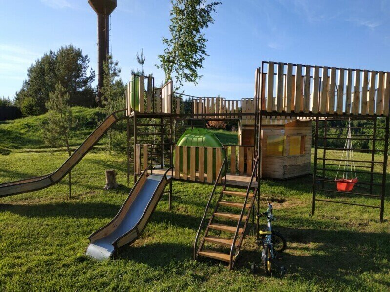 На территории Дома «Звёздное небо» есть детская площадка, на которой будет интересно поиграть как самым маленьким гостям (3–6 лет), так и детям подросткового возраста (до 15 лет).