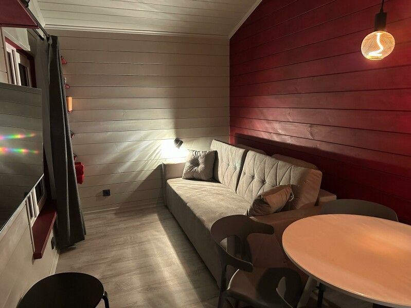 Для гостей подготовлены три домика разной вместимости, стоящие недалеко друг от друга, но на собственных участках, поэтому вы можете быть уверенны в спокойном и уединенном отдыхе. Каждый из них оснащен беспроводным интернетом, телевизором, электричеством, отоплением и собственной ванной комнатой.