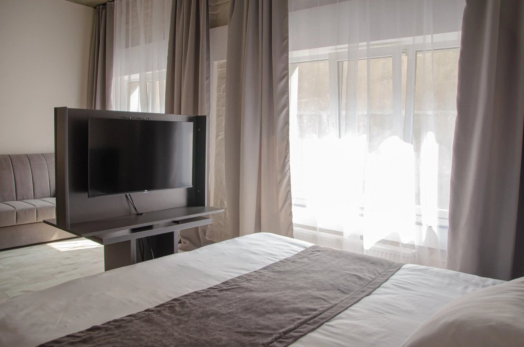 Чтобы вы могли отдохнуть после долгого дня, в номере есть телевизор. Оснащение зависит от выбранной категории номера.