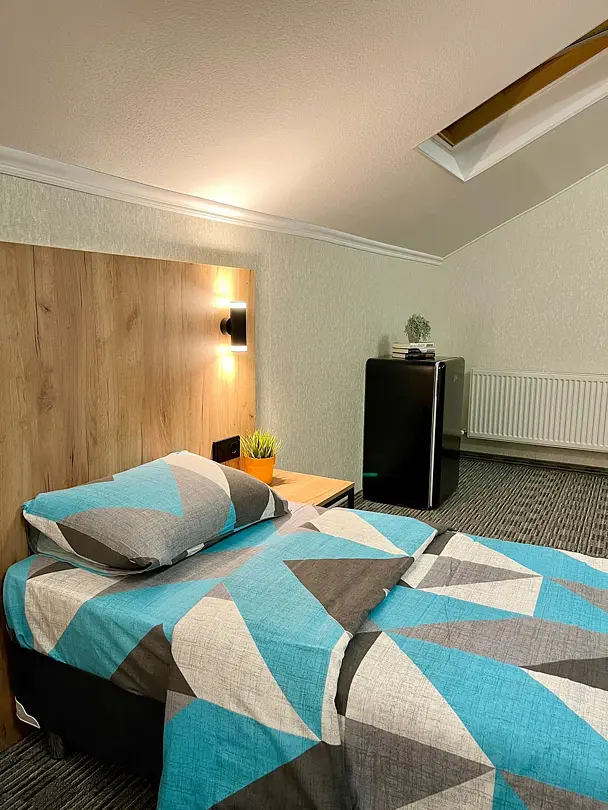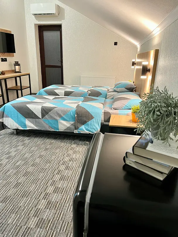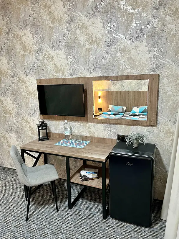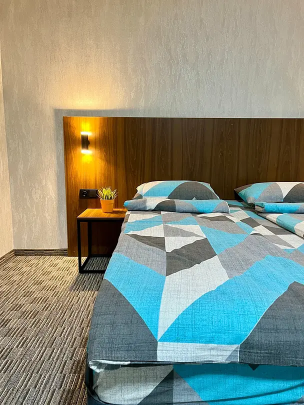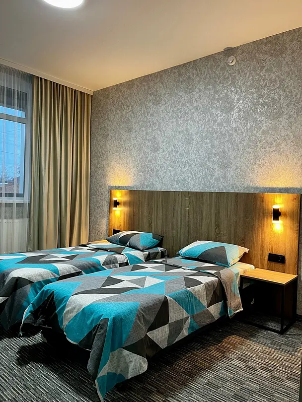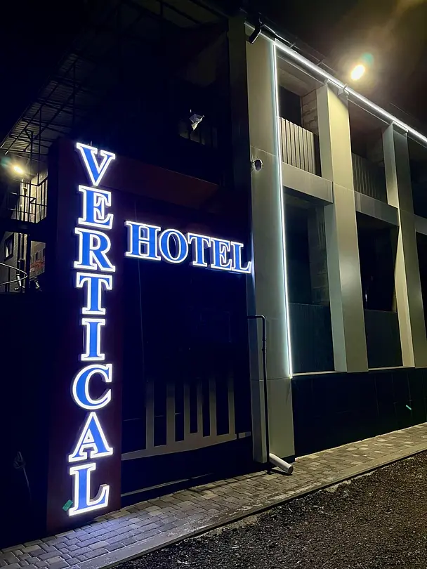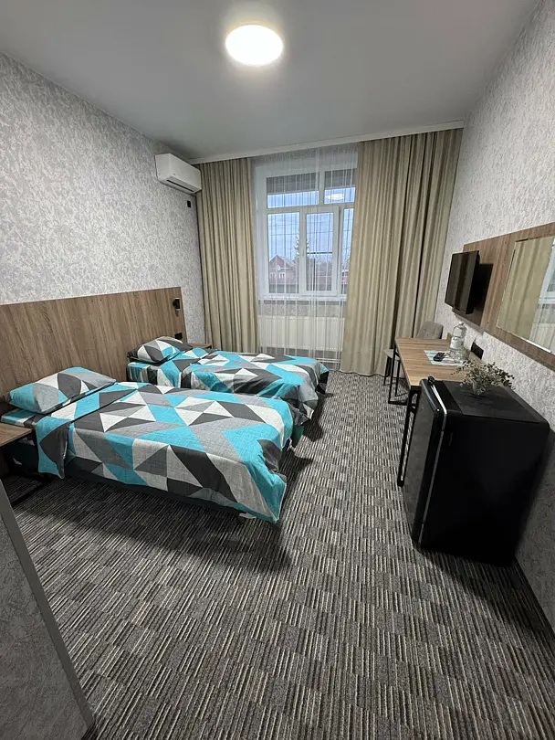 Гостиница «Вертикаль» в станице Отрадной предлагает 2-х и 3-местные номера типа «Комфорт» с удобствами: TV, холодильник, кондиционер, Wi-Fi, полотенца, тапочки, средства гигиены и фен. На этаже установлен кулер с водой.