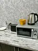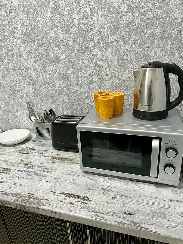 Гладильная доска + утюг, микроволновка, кулер на этаже.