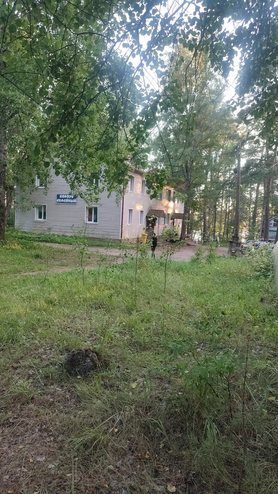 НедостаткиПечально, конечно, видеть бывший пионерский лагерь. До сих пор всё об этом напоминает. Территории не хватает лоска, ухоженности. Но в этом и очарование - дров, бери не хочу. Столовая не работала. Хотели позавтракать. Готовили себе на мангале завтрак. У Семейного корпуса есть зона для мангала, но очень старееееенькая. Мы ник чему не придирались, нам было хорошо и в тех условиях, что мы увидели. Если выйти за территорию, то наткнётесь нга заброшенную лодочную станцию.. Впечатление Припяти... Повторюсь, что на территории разные корпуса, на разном уровне оформлены и зоны рядом с ними. Берег высокий, крутой. Спускаться лучше только в специальных местах. Есть бетонные ступенечки. Берег каменистый, но очень живописный. Ловили рыбу с берега. На мангал очереди не было. Своих соседей мы опросили, нужен ли им мангал. Все ответили отрицательно. Позже на соседнем костровище соседи грелись у огня. Всем было хорошо и уютно. Я бы хотела, что спальные места в номерах были обновлены. Односпальные кровати и просевшими пружинными основами, конечно, уже никуда не годятся и морально устарели