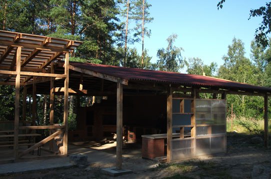 Одноэтажный дом с террасой для круглогодичного прибывания, с отдельной кухней, спальней, гостиной, душевой и туалетом. Оптимально подходит для кампаний из 4-х человек и семей с детьми.
