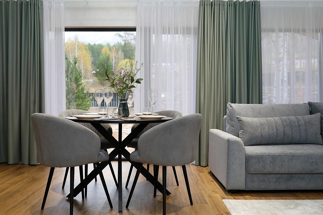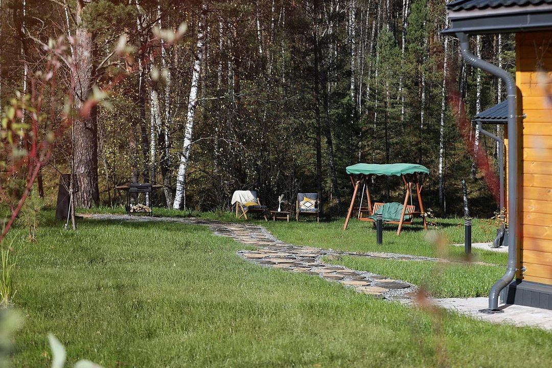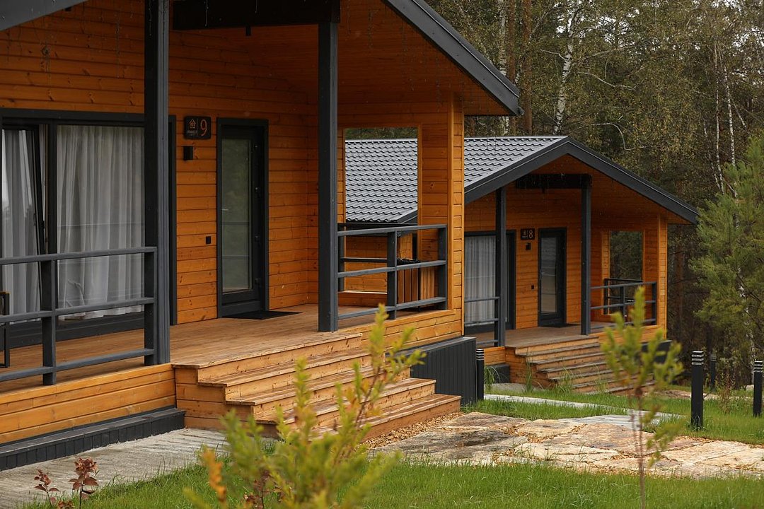 Уединенный коттедж с панорамным видом и собственной территорией. Две спальни, просторная кухня-гостиная и терраса — пространство, где каждый находит своё место. За пределами дома — благоустроенная территория с качелями, костровищем и зоной для вечеров под открытым небом. А главное — редкая красота леса и реки, которые становятся частью вашего отдыха. На территории отеля есть дорожки для прогулок с вечерней подсветкой, детская площадка, костровая зона и беседки с видом на лес реку.Услуги и удобства